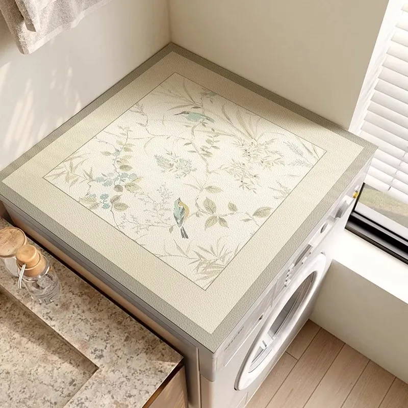 北欧スタイルの防水・防日焼けPVCレザー洗濯機マット、メンテナンス不要でほこりを防ぎ、上質感あふれる軽奢なベッドサイドテーブルマット!