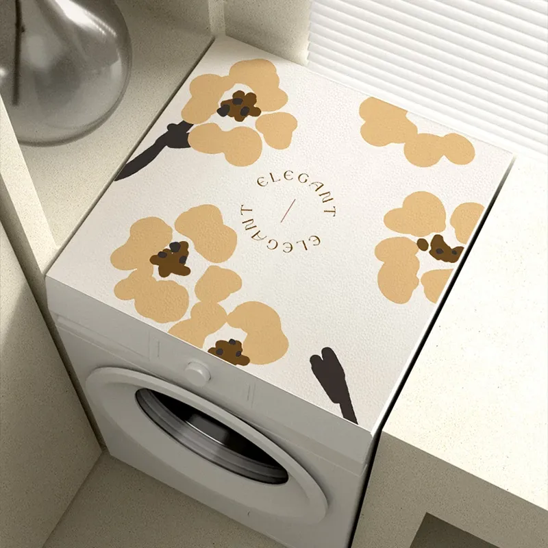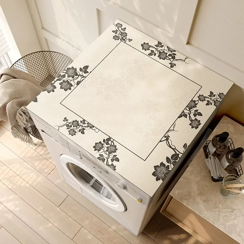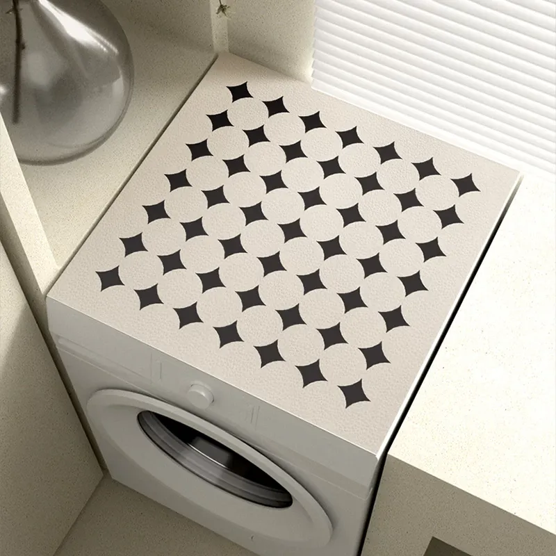 北欧スタイルのレザー製洗濯機用防水・防油マット - 高級感あふれる軽奢アイテム!PVC素材でお手入れ簡単、清潔感を保ちながらおしゃれな寝室を演出。