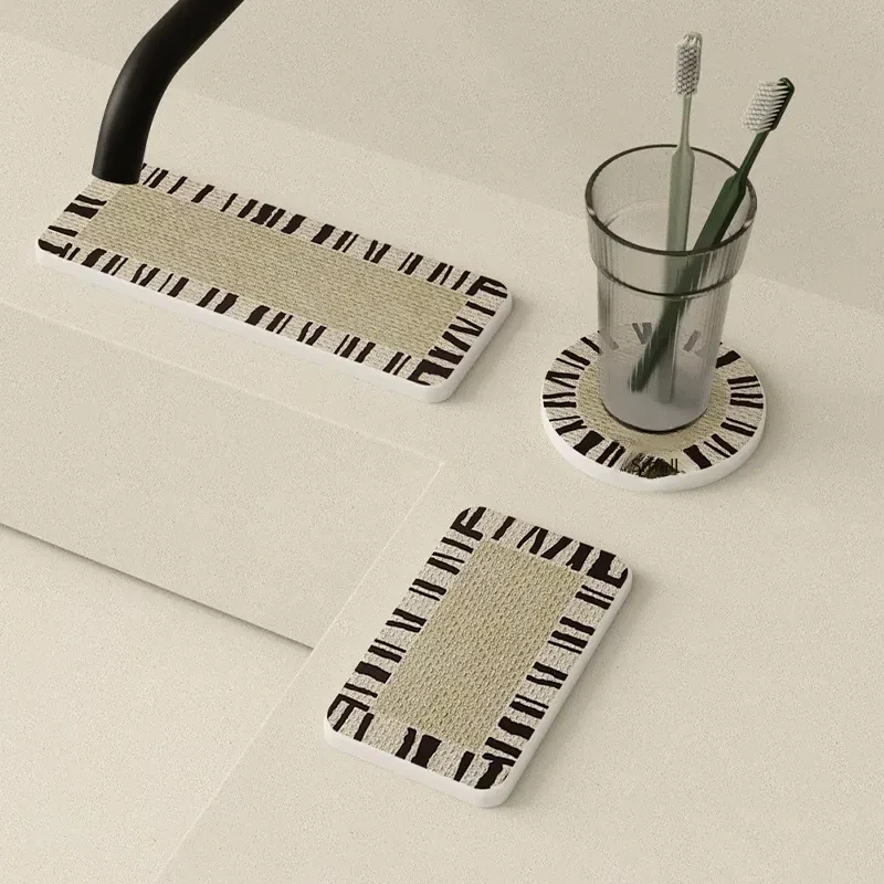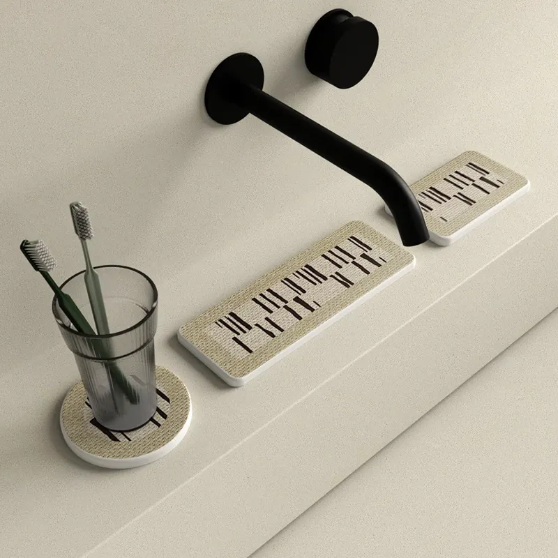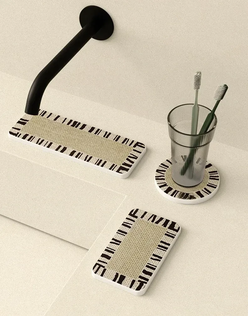 Japanese Wabi-Sabi Style Bathroom Hard Diatom Mud Sink Countertop with Absorbent Mat for Toothbrushes and Washbasins - Perfect for a Serene and Elegant Bathroom Experience