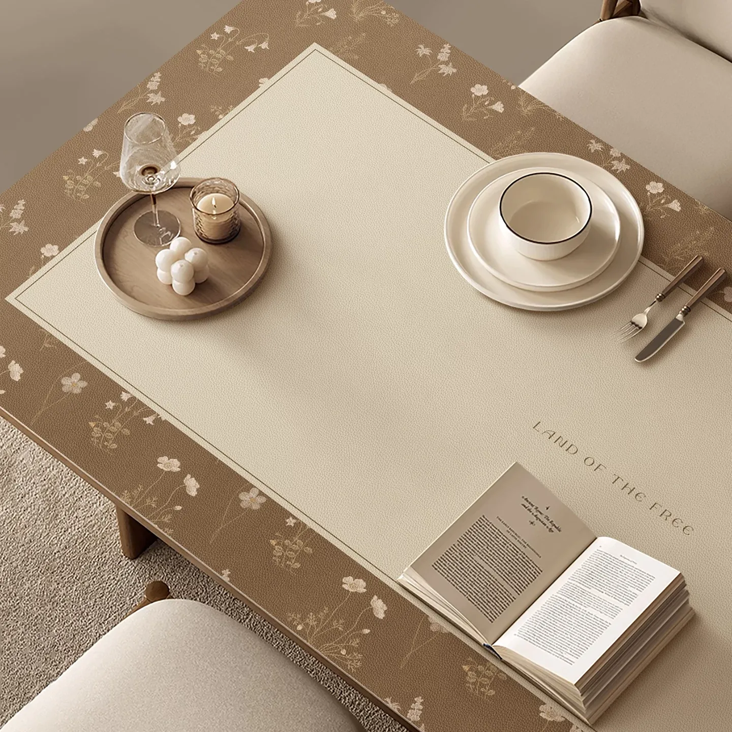 French Waterproof, Oilproof, and Heat-Resistant Tablecloth - Easy-Clean Leather Dining Table Mat, Stain-Resistant and Durable Coffee Table Protector