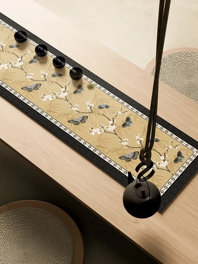 Elegant Waterproof Tea Table in New Chinese Style - Long Rectangular Zen-Inspired Absorbent Tablecloth with Diatom Mud Soft Mat for Tea Ceremony. Perfect for Enhancing Your Tea Experience!