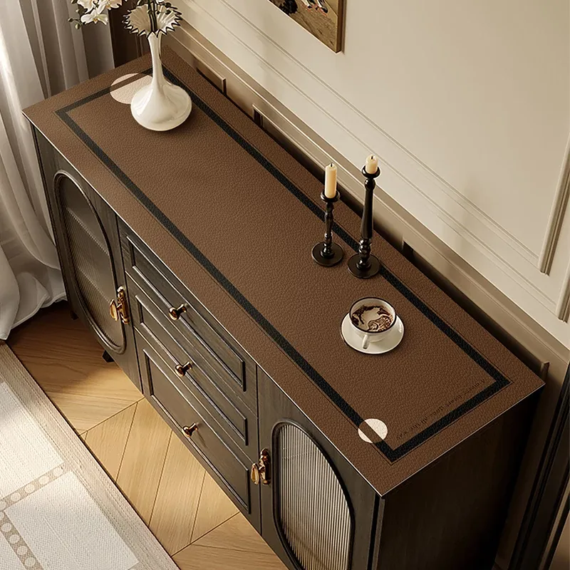 Nordic Style PVC Leather TV Cabinet Mat - Waterproof, Oil-Resistant, Easy-Clean Table Protector with Luxurious Feel