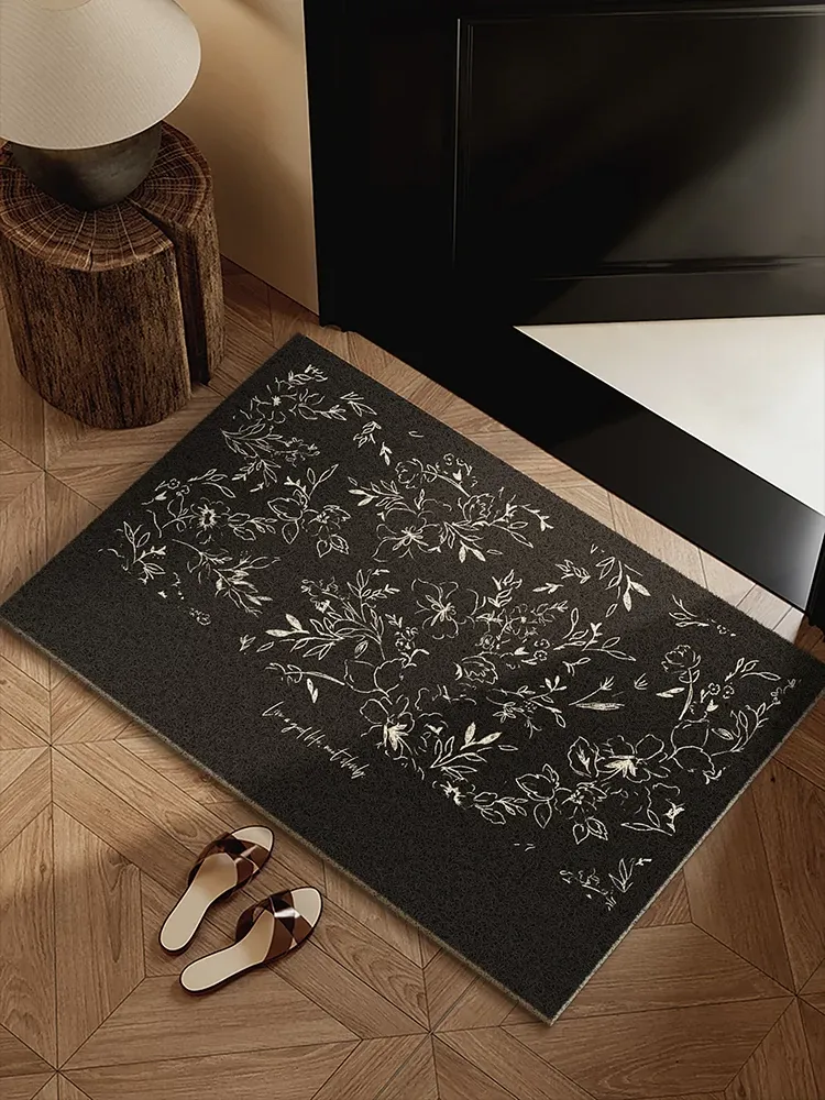 Elegant 2023 Floral Design High-End Silk Loop PVC Entryway Carpet - Customizable, Non-Slip Door Mat for a Stylish Home Entrance