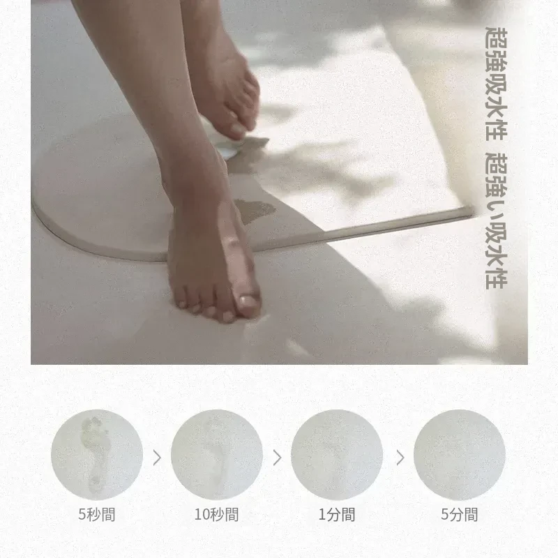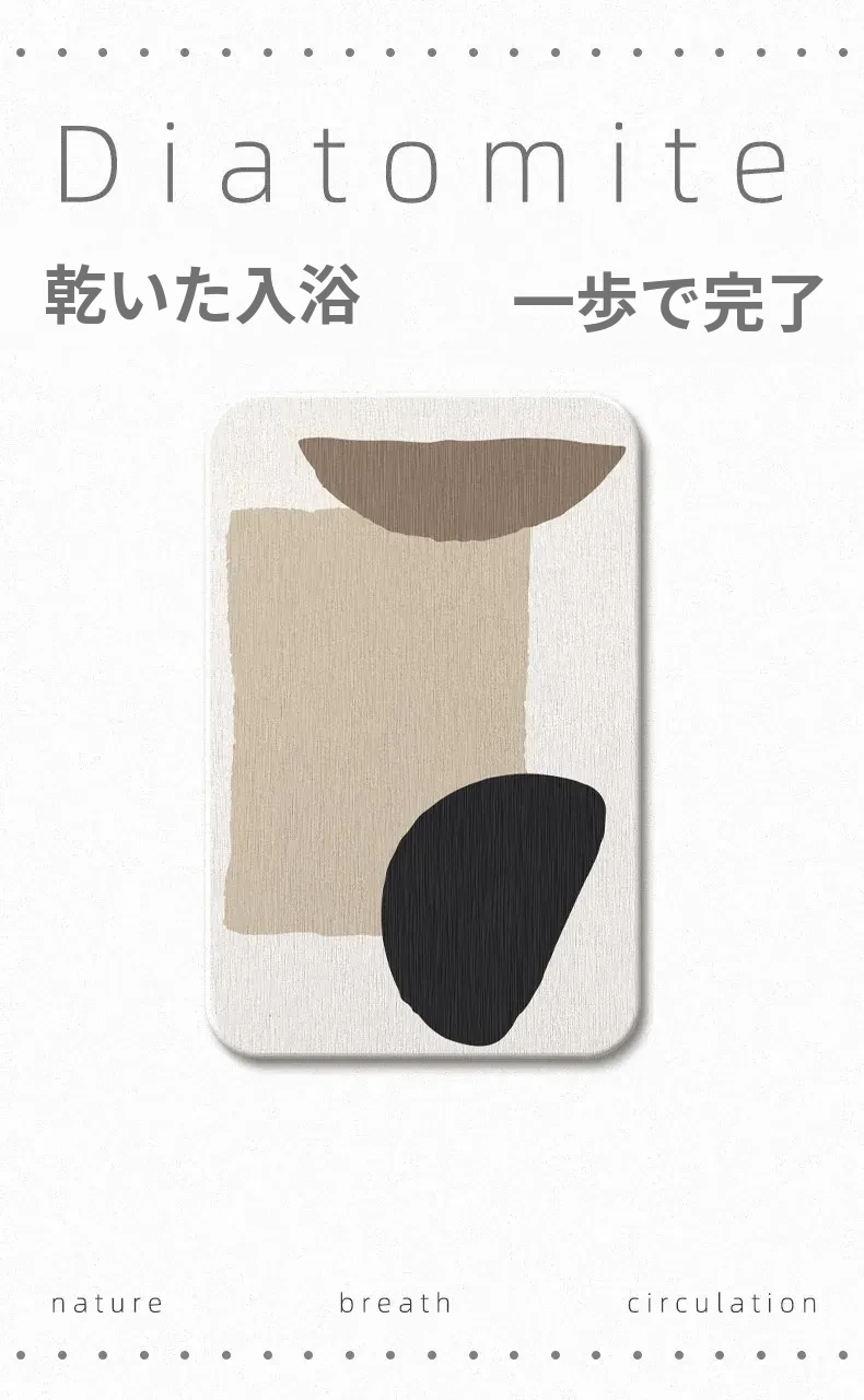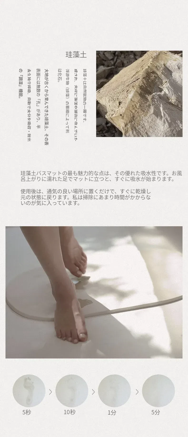 侘寂風の浴室用吸水マット - 日本のトイレや洗面所に最適!滑り止め付きで安全、デザイン性も抜群。おしゃれで機能的な硬質シリカ藻マットで、心地よい空間を演出しましょう。