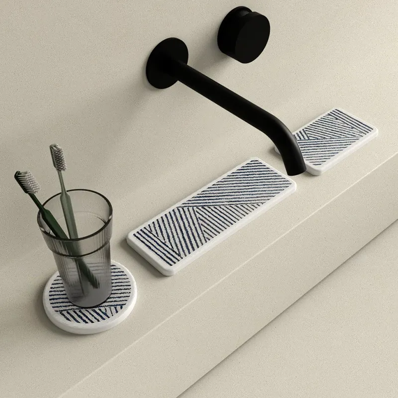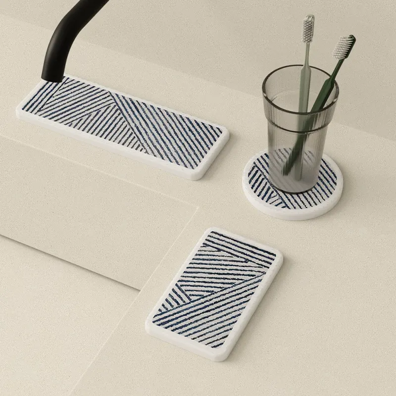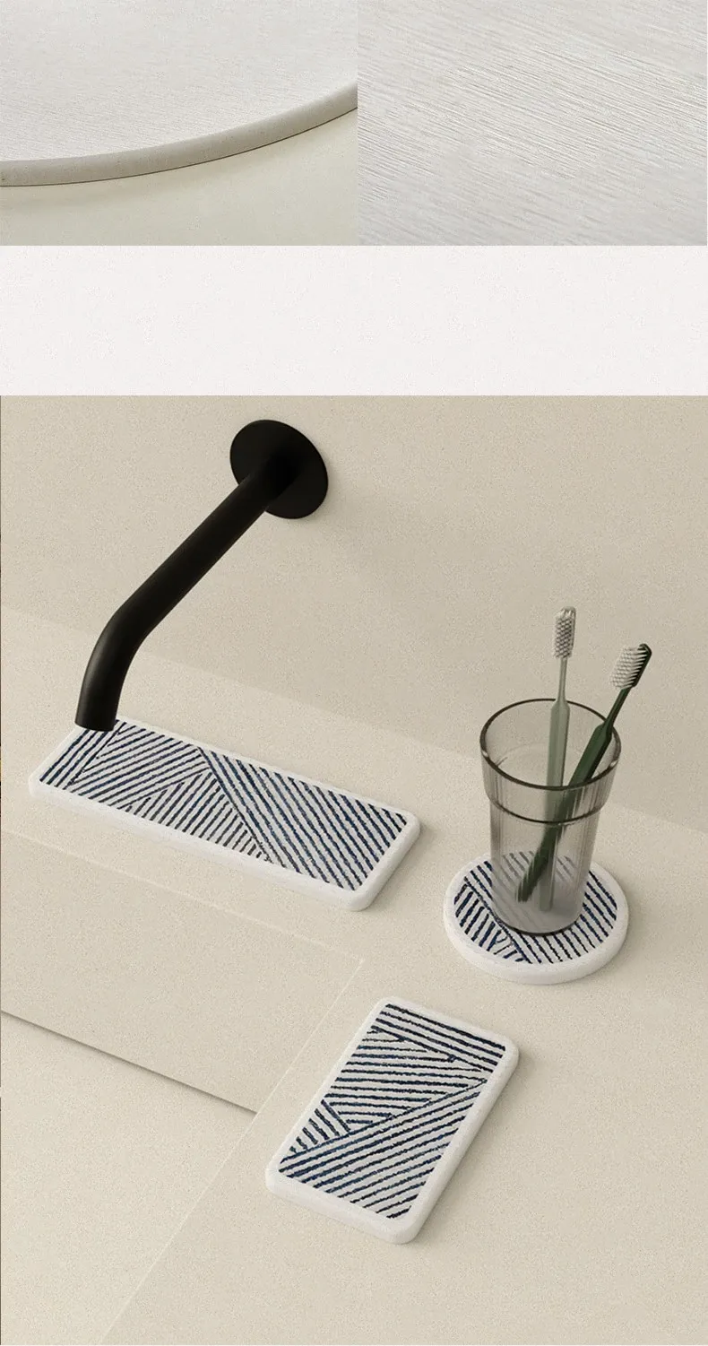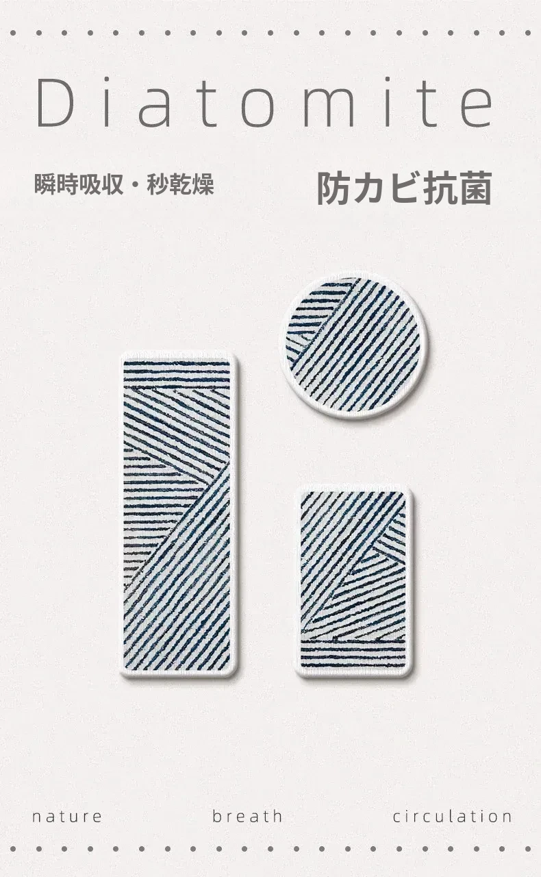 和風侘寂スタイルのシリカゲルバスルーム吸水マット - トイレ洗面台用ブラシホルダー付き、快適でスタイリッシュな衛生空間を演出!