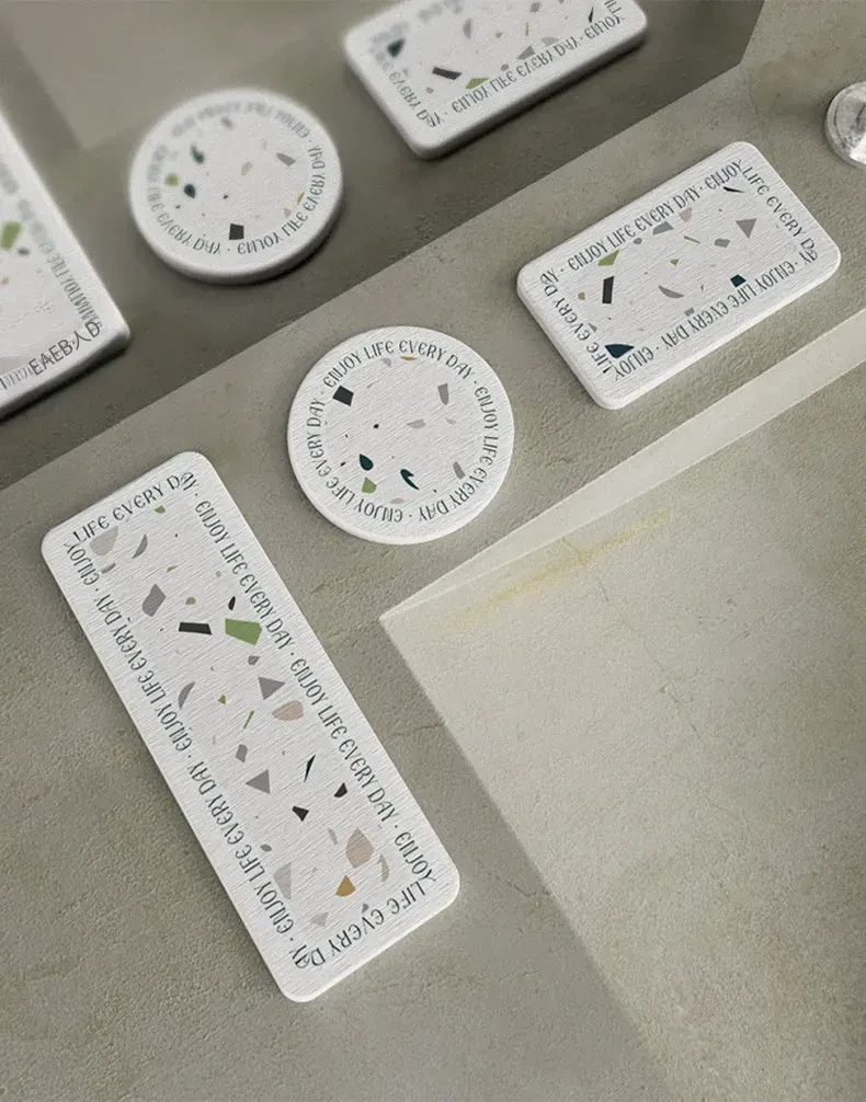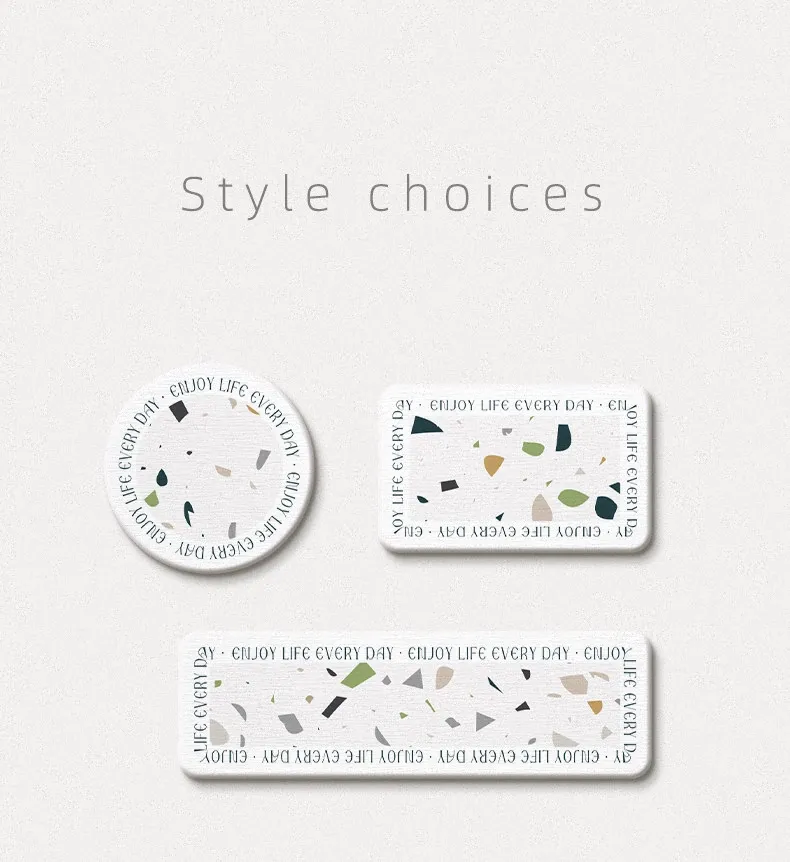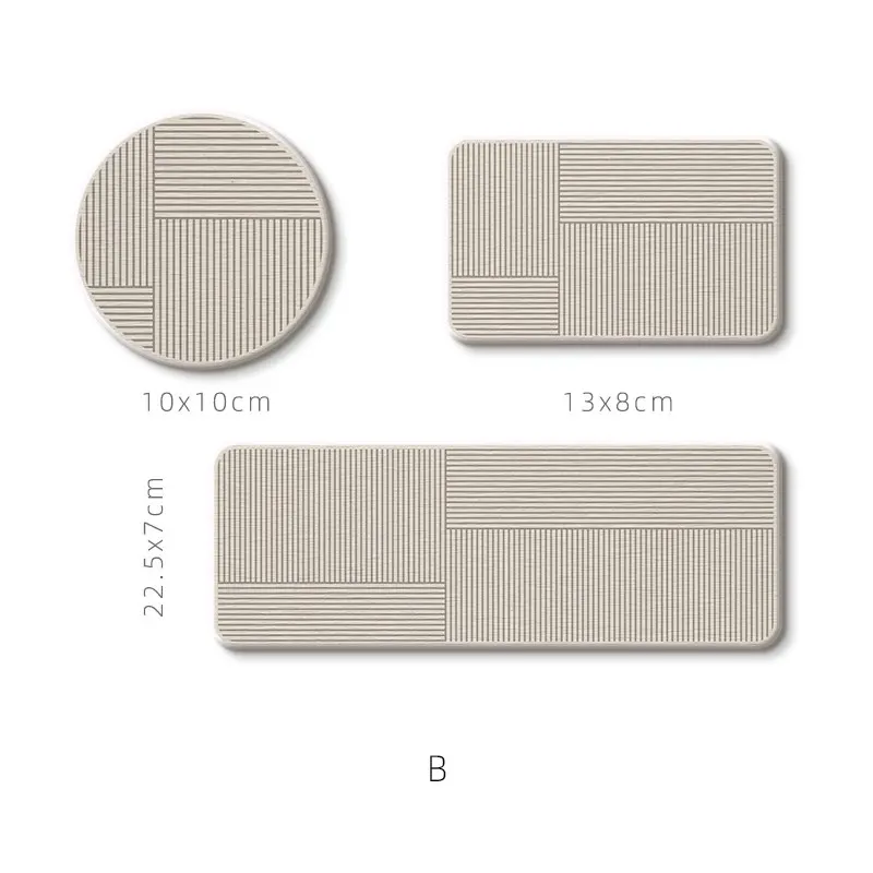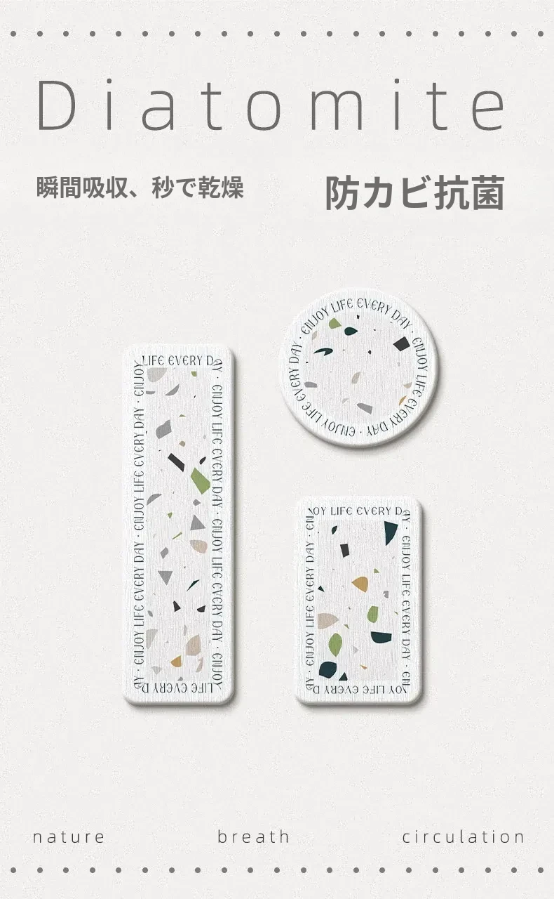 水磨石デザインのバスルーム用硬質珪藻土洗面台、シンプルな水栓、吸水マット付き!歯ブラシカップも完備で、スタイリッシュな空間を演出します。快適で機能的なバスルームを手に入れましょう!