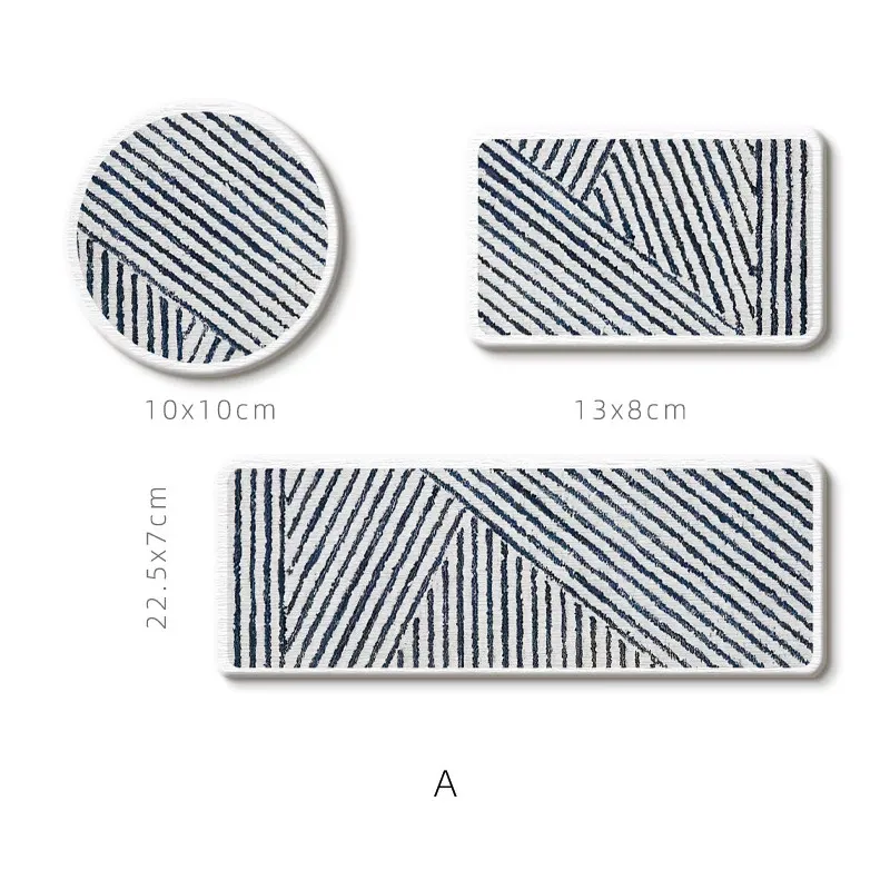 抽象ラインの3点セット 硬いマット(洗面マット)