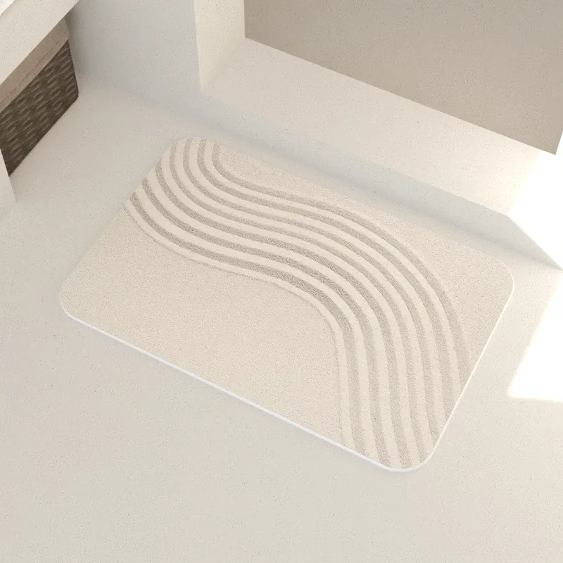 和モダンな侘寂スタイル!吸水性抜群のシリカゲルバスマット - 滑り止め付きでトイレやバスルームに最適、あなたの空間をおしゃれに演出します。