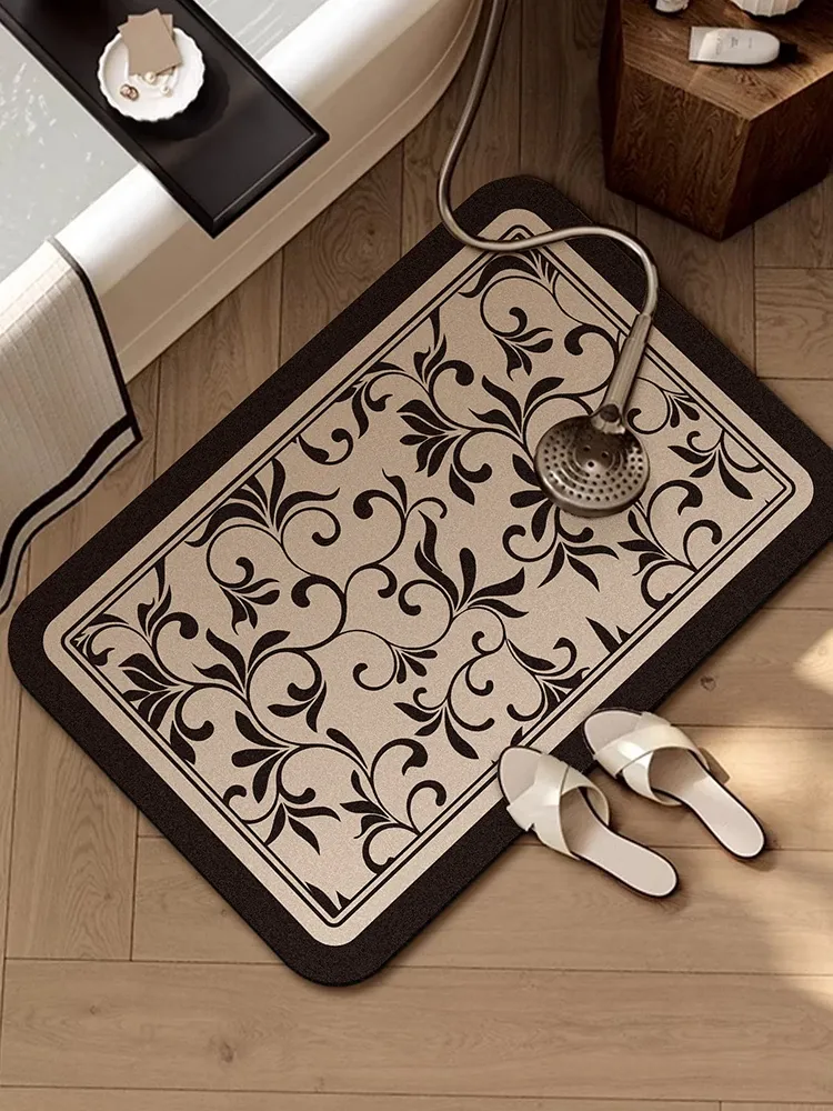 レトロ風バスルームマット ソフトシリカゲル吸水速乾マット 滑り止め付き トイレ・洗面所用カーペット おしゃれで実用的、快適な足元を実現!