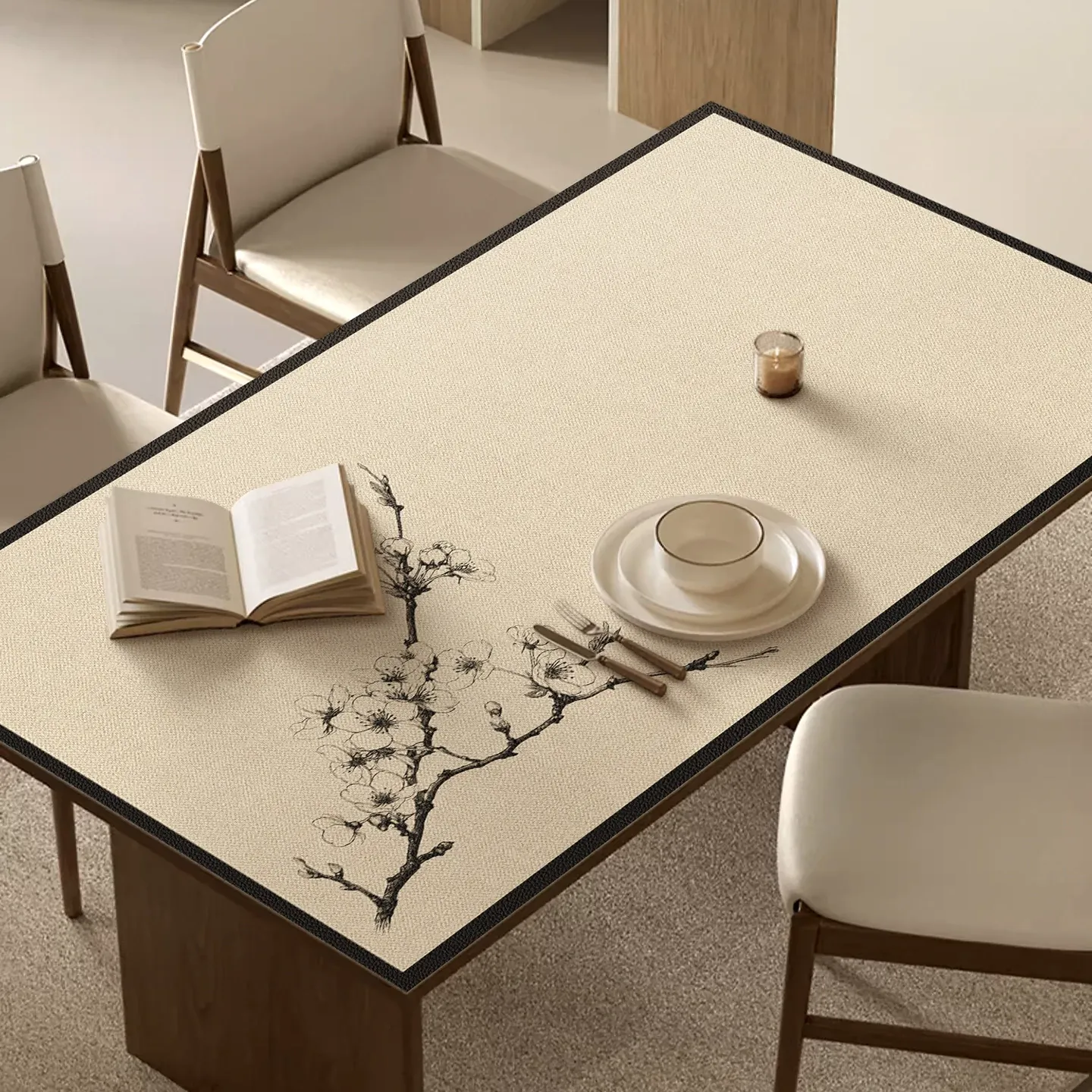 新中式デザインの防水・防油・防熱のテーブルマット - お手入れ簡単で耐久性抜群!茶卓や書斎の保護に最適。汚れに強く、スタイリッシュな空間を演出します!