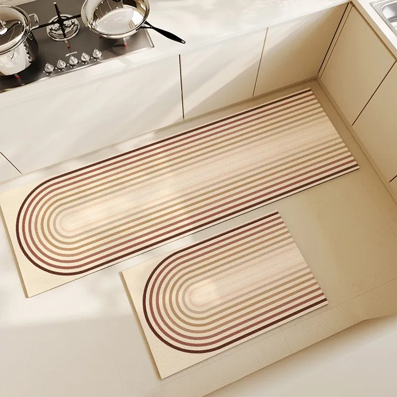 高級感あふれる北欧風キッチンマット - お手入れ簡単、汚れ防止!防水・防油のPVCレザー素材で、スタイリッシュな空間を演出します。快適さと美しさを兼ね備えた一品です!