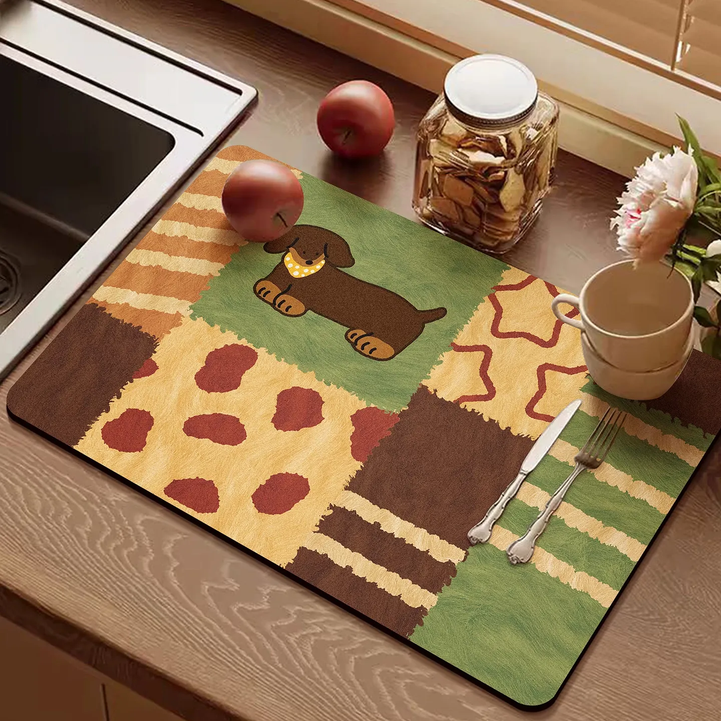 カートゥーンデザインのキッチンシンク用防滑吸水マット|汚れに強く、速乾性抜群!|洗面台やバーカウンターにも最適な便利アイテム!