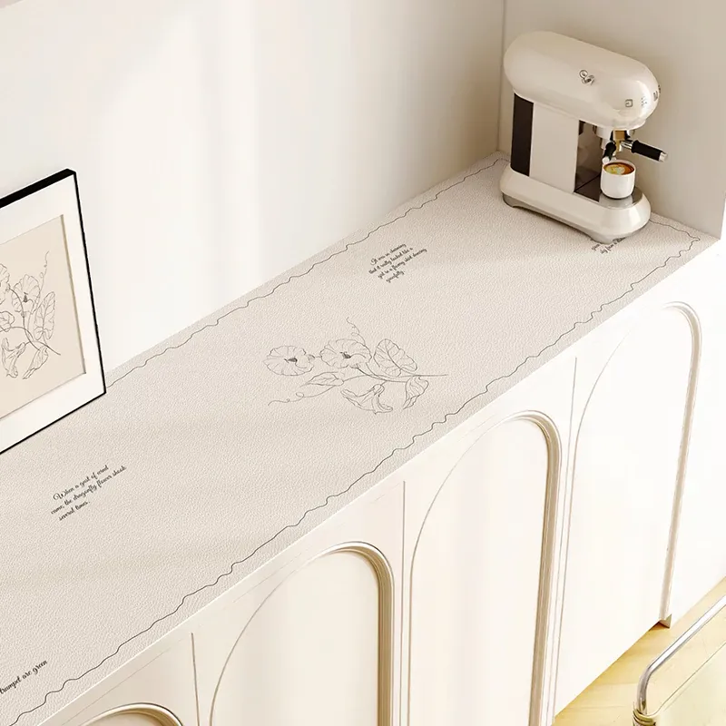 防水・防油・隔熱!クリーム風デザインのレザー調テーブルクロス - お手入れ不要で、リビングや靴箱をスタイリッシュに守る卓上保護マット!