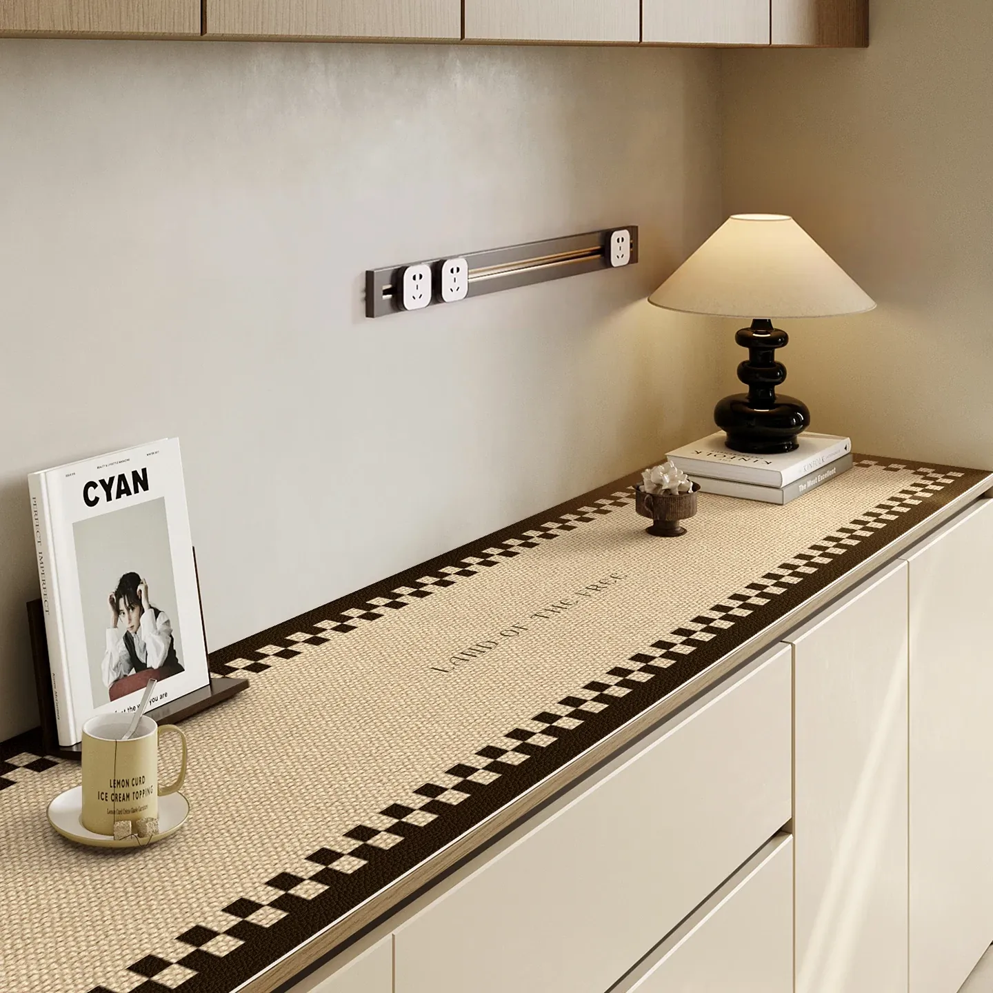 レトロな高級感漂うテレビボードマット、防水・防油・お手入れ簡単なPVCレザー製。フレンチスタイルのサイドボードにぴったりの熱遮断テーブルクロス。あなたのインテリアを格上げするアイテム!