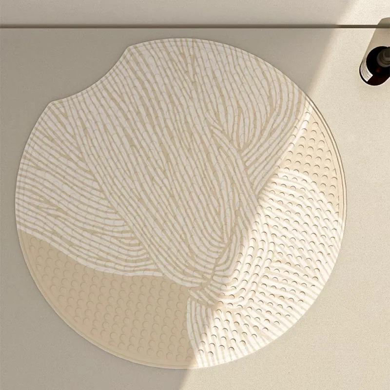 高級感あふれる円形PVC防滑バスマット!おしゃれなデザインで滑りにくく、安全な入浴タイムをサポート。防水仕様で洗面所にも最適。日本の吸盤付きで、しっかりと固定され安心してお使いいただけます!