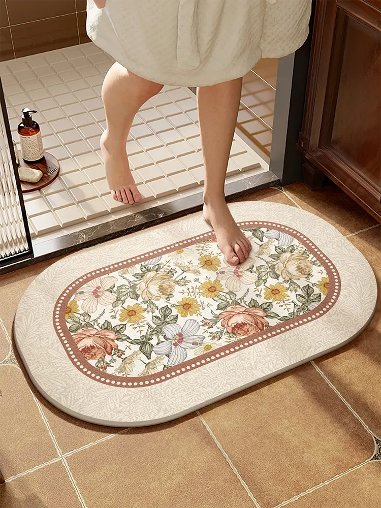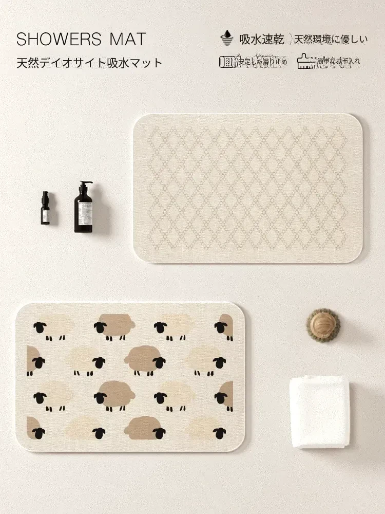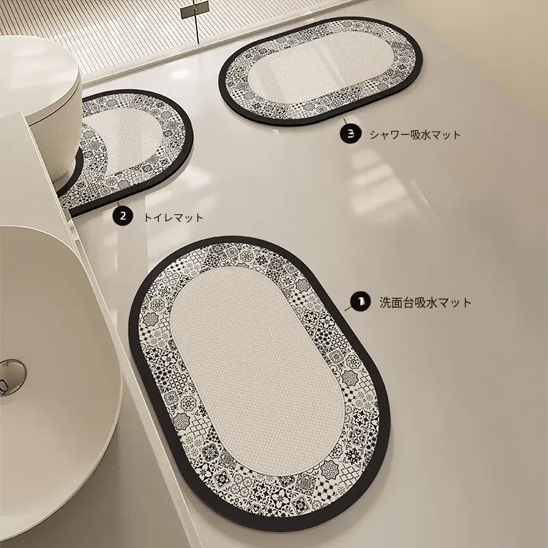 速乾・防滑のバスルームマット|シリカゲル素材で吸水性抜群!トイレや洗面所に最適な安全設計で、足元をしっかりサポート。滑りにくく、快適なバスタイムを実現します!