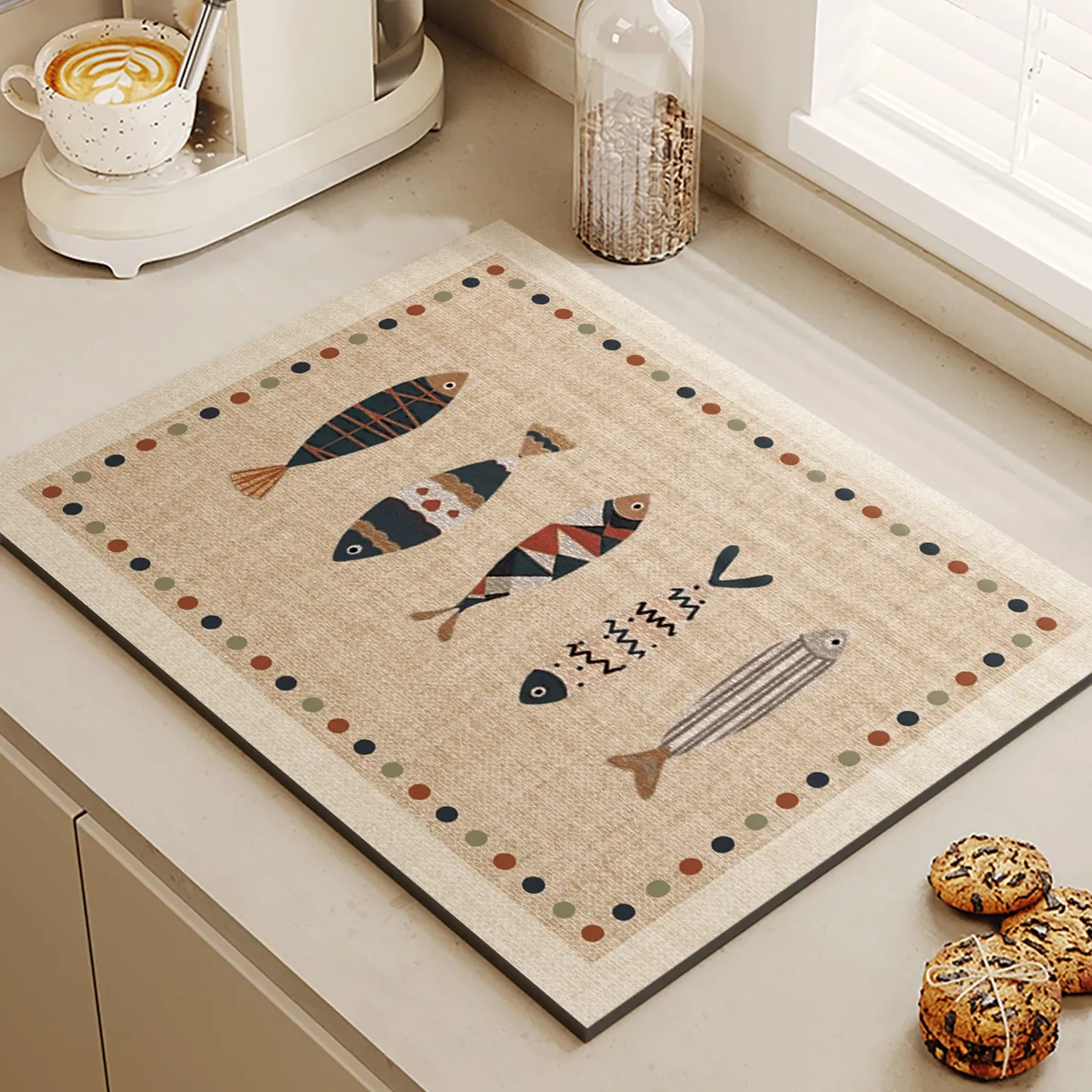 エレガントな防滑キッチンカウンターマット - 水切り・防汚・吸水性抜群!洗い物やカップ置きに最適で、お手入れも簡単。清潔で快適なキッチン環境を実現します!