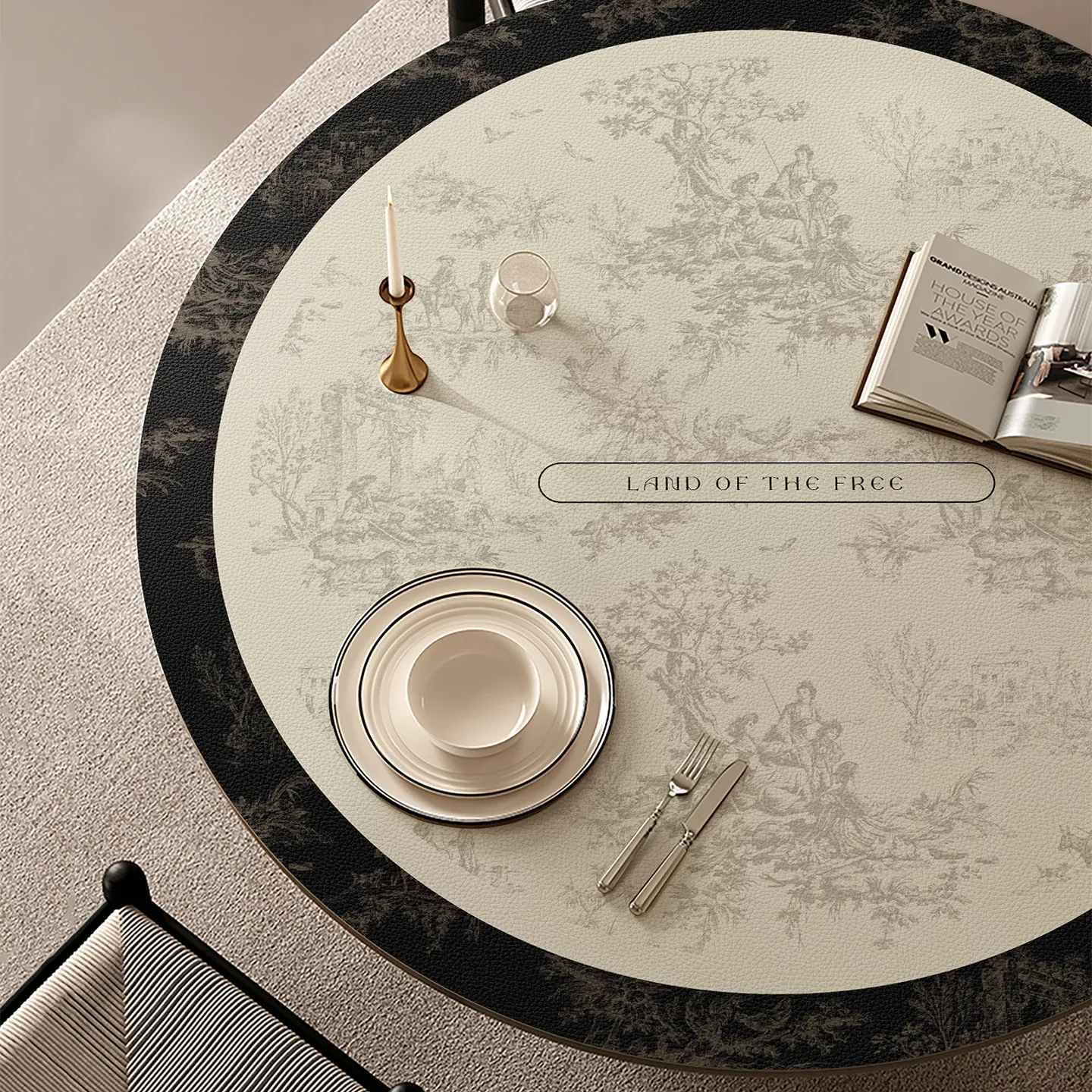 防水・防油・防熱の円形テーブルマット|高級感漂う中華風デザイン|ダイニングテーブルやコーヒーテーブルをしっかり保護!おしゃれなレザー調で、食卓を一層引き立てるアイテム!