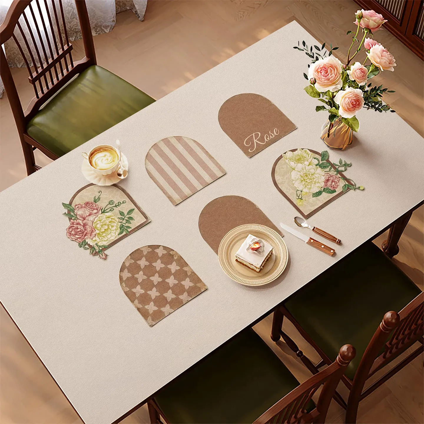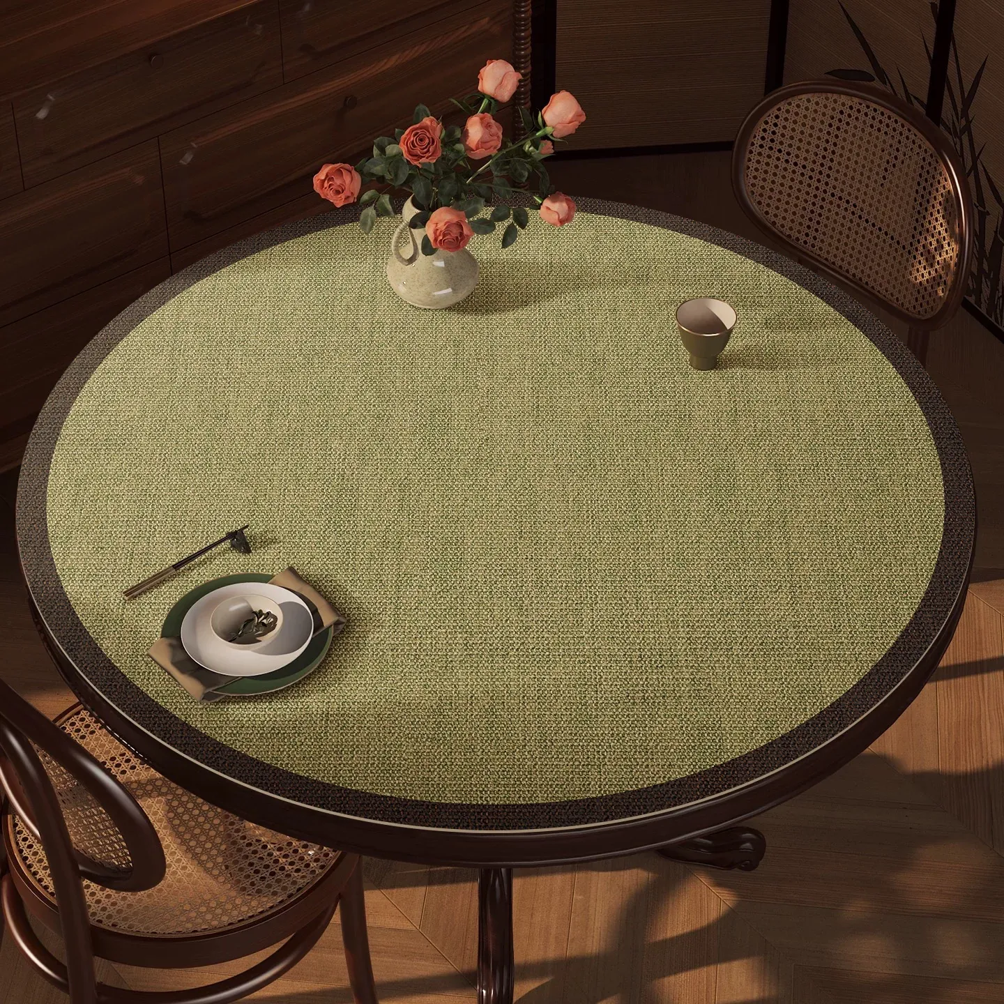 和風侘寂スタイルのベッドサイドテーブルマット - 防塵・防水の高級レザーカバー、洗練された軽奢感あふれるダイニングテーブル用マット!おしゃれな空間を演出します。