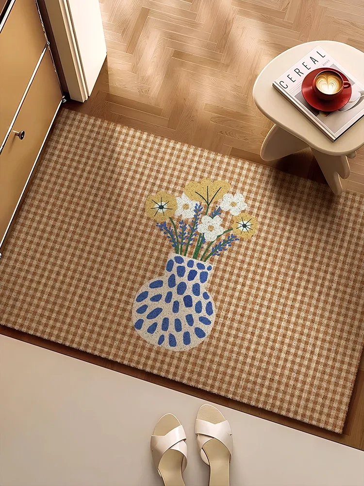 2023年新作!高級感あふれる花柄シルクのようなPVC製玄関マット - カット可能で防滑機能付き!おしゃれで機能的な足元を演出し、あなたのエントランスを華やかに彩ります。